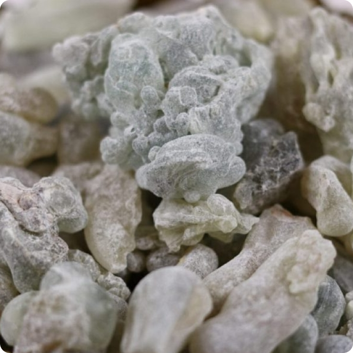 שרף זה מתאפיין בגוונו הירקרק הייחודי, בארומה עשירה ונעימה ההופכת אותו לנחשק ומבוקש ברחבי העולם. הגרגרים של הלבונה אותה אנו מייבאים עוברים מיון קפדני ועומדים בקריטריונים המבטיחים איכות גבוהה של תוצר.